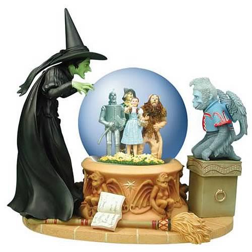 From The Wizard of Oz collection. This globe features the Wicked Witch of the West with one of her flying monkeys peering at Dorothy, Scarecrow, Tin Man and the Cowardly Lion in her crystal ball. The wind-up musical movement plays the tune "We're Off to See the Wizard". Made of resin. The glass snow globe has pastel glitter inside and measures 4" (100mm). Measures 8.25" x 9" wide overall.** CERTAIN CONTENT THAT APPEARS THIS SITE COMES FROM AMAZON SERVICES LLC. THIS CONTENT IS PROVIDED ‘AS IS’ AND IS SUBJECT TO CHANGE OR REMOVAL AT ANY TIME.